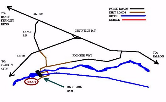 Wheather you're driving in from the Reno area or Carson City, when you get to Pioneer way, take a right. If you're driving in from the Austin or Las Vegas areas, drive all the way through town and make a left on Pioneer.
